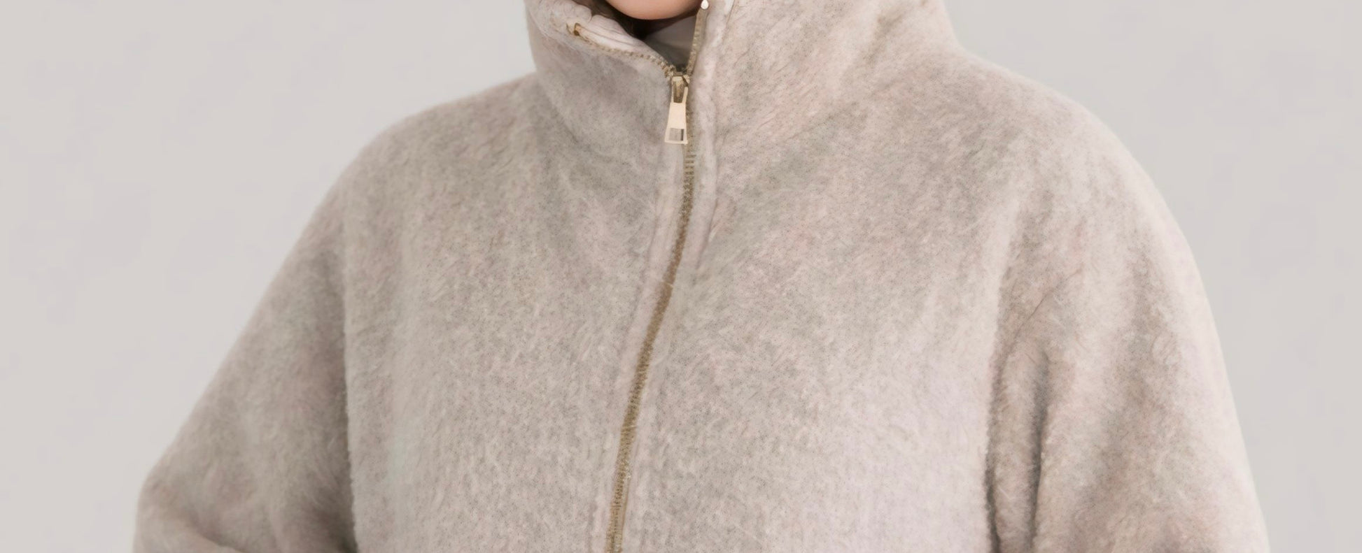 • High-neck collar with a premium gold-tone zipper.